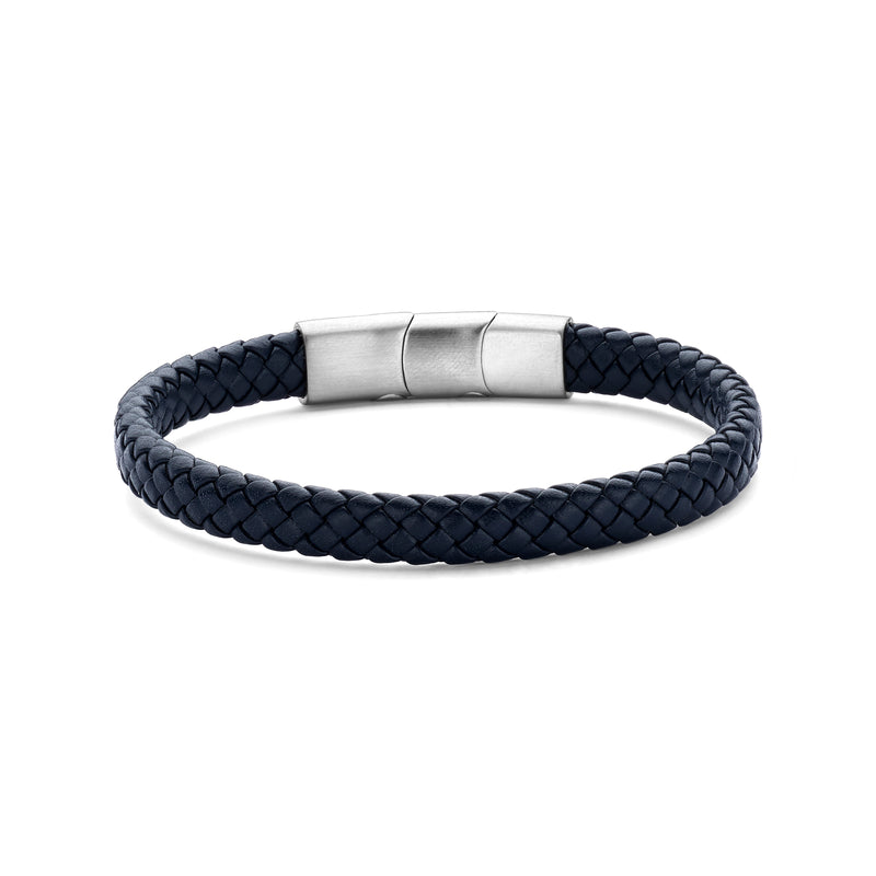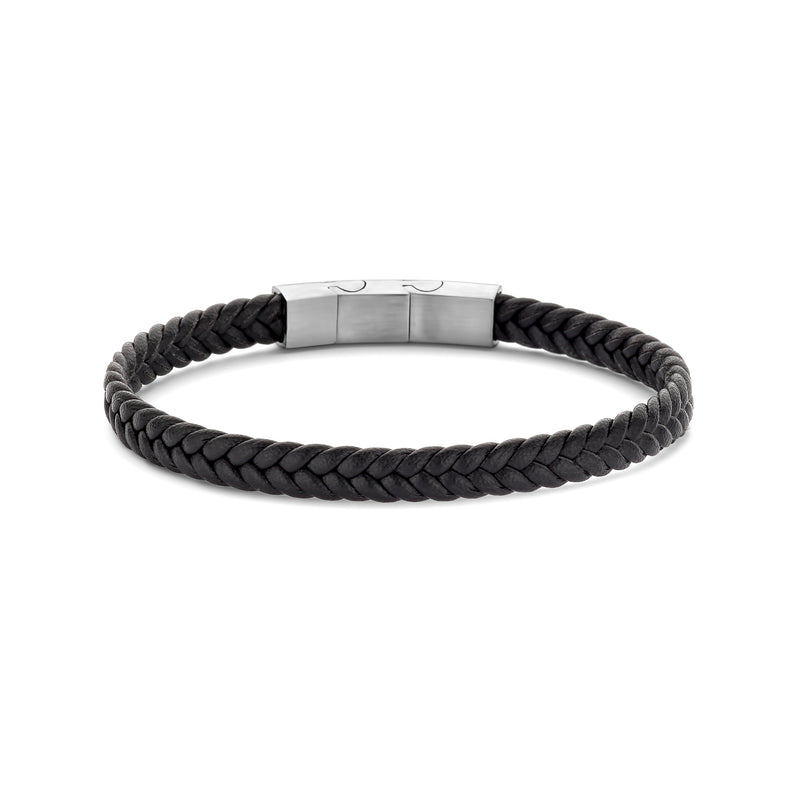 Frank 1967 Braided Leather Men's Bracelet Silver-Colored Brushed